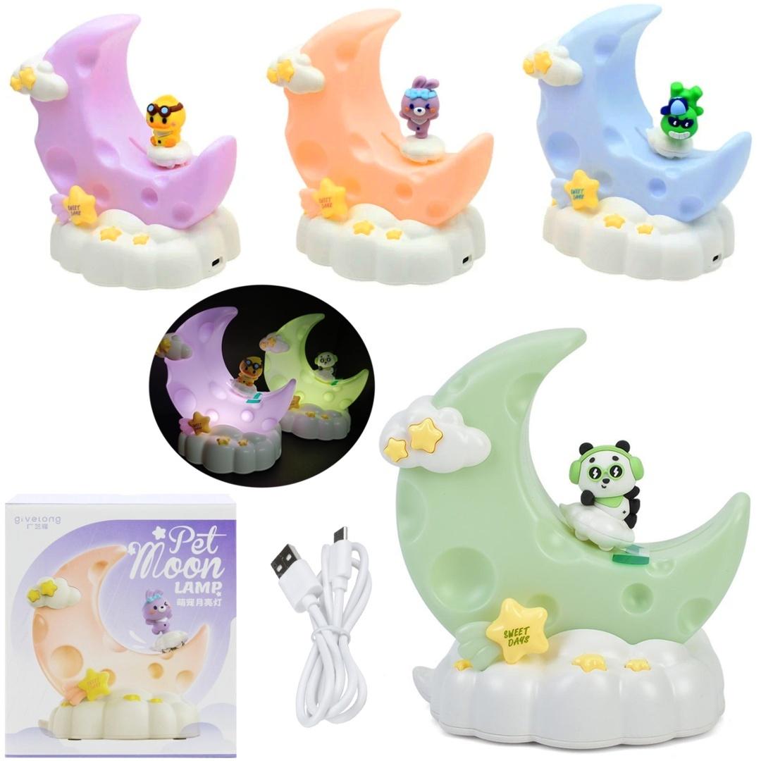 Przenieś swoje dziecko do krainy bajkowych snów z naszą uroczą Lampką Nocną "Pet Moon Lamp". Ten uroczy gadżet to idealne połączenie praktycznego oświetlenia nocnego i magicznej dekoracji pokoju. Lampka przedstawia kolorowy księżyc spoczywający na puszystej chmurce, w towarzystwie przesłodkiego, małego zwierzaka.