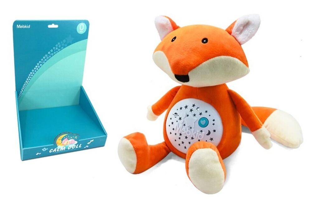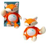Dodatkowo brzuszek liska będzie się mienił kolorowymi światełkami, a gdy będzie ciemno w pokoju wypełni go kolorowymi, migączącymi gwiazdkami.