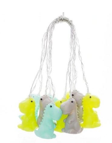 Sznur lampek LED z motywem dinozaurów.