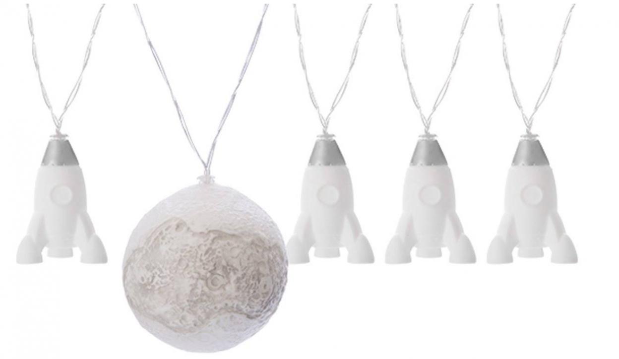 Sznur lampek LED z motywem rakiet kosmicznych.