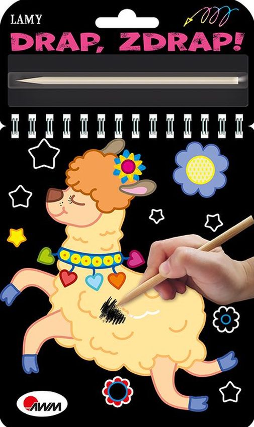 Książeczka ZDRAPYWANKA z RYSIKIEM, dzięki któremu powstaną kolorowe obrazki z lamami. Do książeczki dołączono DREWNIANY RYSIK, którym zdrapuje się farbę z powierzchni stron. Książka wykonana jest z trwałego kartonu, a wykorzystane farby są całkowicie bezpieczne. Po zdrapaniu warstwy farby powstaje KOLOROWY OBRAZEK, który można powiesić na ścianie lub dać komuś w prezencie. Zdrapując warstwę SPECJALNEJ FARBY, dziecko odkrywa obrazek lamy, który jest pod nią ukryty. Taka twórcza zabawa daje MNÓSTWO RADOŚCI. Drewniany rysik ma WYGODNY KSZTAŁT i jest PROSTY W UŻYCIU – wystarczy wyjąć go z blistra i rozpocząć zdrapywanie. Książka pozwala dzieciom pobudzić WYOBRAŹNIĘ i rozwijać KREATYWNOŚĆ. Poprzez kolejne etapy zdrapywania (kontury, wypełnienia, a na końcu tła) młodzi artyści ćwiczą PRECYZJĘ. Na każdej rozkładówce są obrazki z LAMAMI oraz krótkie zabawne WIERSZYKI. Książka • zapewnia ROZWÓJ MANUALNY • ćwiczy KONCENTRACJĘ • doskonali PRECYZJĘ • rozwija WYOBRAŹNIĘ • pozwala miło SPĘDZIĆ CZAS DRAP, ZDRAP! Seria poręcznych KSIĄŻECZEK ZDRAPYWANEK to gwarancja świetnej zabawy w domu, w przedszkolu czy w podróży. Przy pomocy dołączonego RYSIKA dziecko odkryje kolejne elementy.