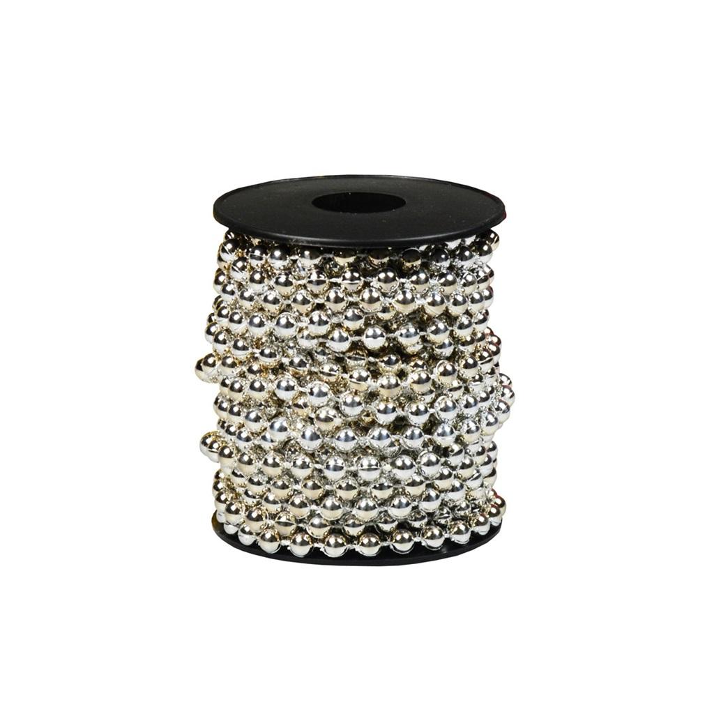 Łańcuch dekoracyjny z koralików w kolorze srebrnym o rozmiarze 6 mm na szpuli. Uniwersalna, błyszcząca dekoracja świąteczna na choinkę, do dekoracji domu, stroików. Idealnie pasuje do różnych aranżacji. Łańcuch o długości 6 m.