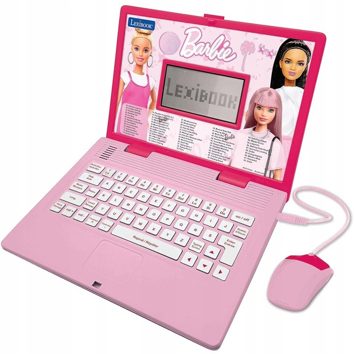 * Edukacyjny laptop ze 124 zadaniami (62 w każdym języku) zapewniający zabawną i interaktywną naukę z Barbie!