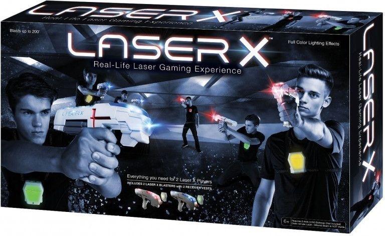 LASER X to niesamowita gra high tech. Dzięki niej poczujesz się tak, jakbyś miał własną laserową arenę! Blastery mają zasięg 60 metrów, a kamizelka z czujnikiem zlicza celne strzały. Kolorowe efekty świetlne oraz dźwięki stereo z pewnością będą dodatkową atrakcją. Możesz grać jeden na jednego lub z większą, nieograniczoną liczbą graczy. Baw się wewnątrz i na zewnątrz! Laser X używa promieni podczerwonych, nie prawdziwego lasera. Zestaw zawiera: 2 Blastery Laser X, 2 kamizelki z czujnikiem, wymaga 6 baterii AAA(1,5 V)- brak w zestawie Dla dzieci w wieku od 6 lat