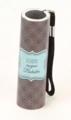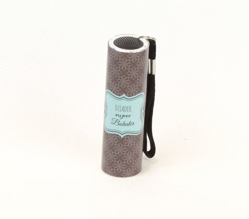 mała, poręczna latarka LED z dedykacją „Dziadek, Super Bohater” doskonały pomysł na prezent dla dziadka, nie tylko z okazji jego święta wymiary: 8,5x2,5 cm"