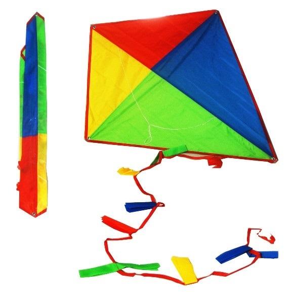 Kolorowy latawiec w paski do puszczania podczas słonecznych, trochę wietrznych dni. Produkt zapakowany w przezroczysty worek. Produkt dla dzieci od 3 lat.