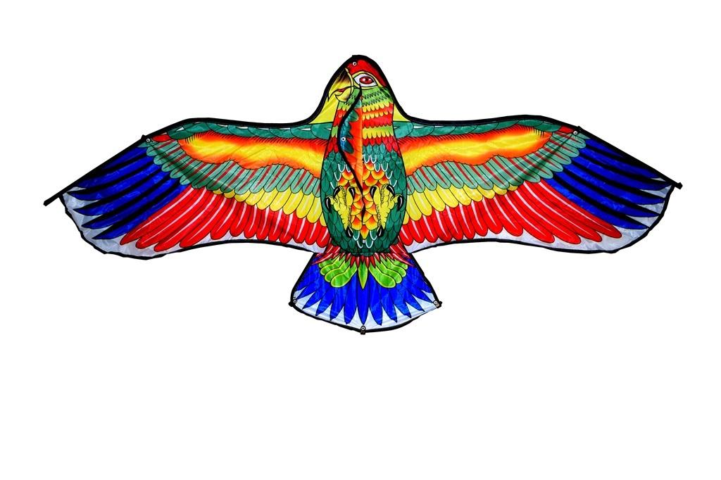 Duży latawiec jednolinkowy Papuga ma aż 105 cm rozpiętości skrzydeł. Latawiec Orzeł da wiele godzin zabawy dla dzieci i dorosłych w wietrzne dni. ma żyłkę nawiniętą na wygodny uchwyt do sterowania. Latawiec jest łatwy do złożenia w kilka minut.