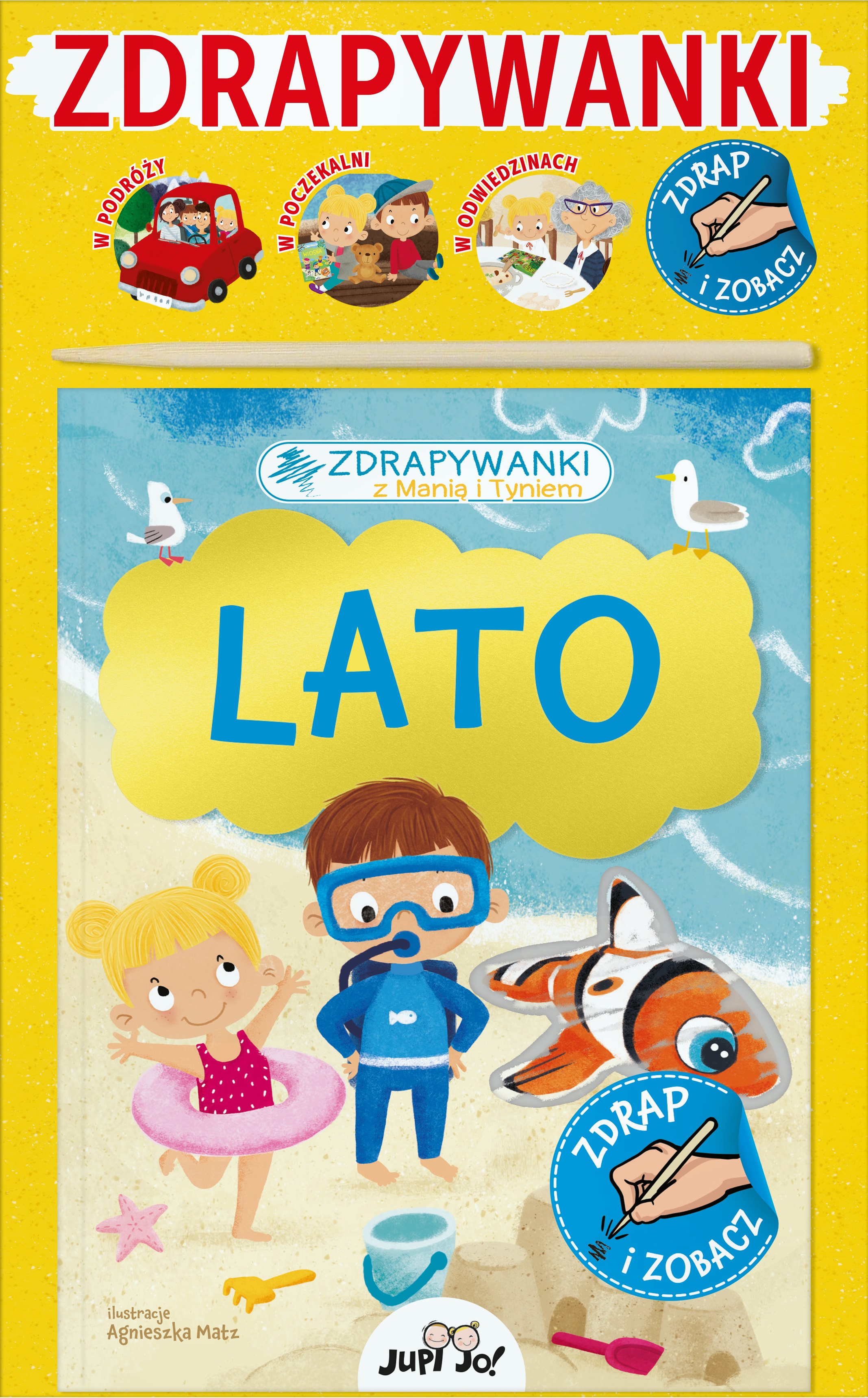 Zdrapywanki z Manią i Tyniem. Lato ma poręczny format i poprzez zabawę wspiera rozwój manualny najmłodszych. Używając patyczka, dzieci zdrapują srebrną farbę i odkrywają całą ilustrację. To doskonały trening koncentracji.