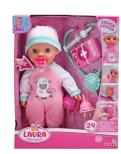 Lalka z miękkim ciałem, z zamykającymi się oczami, 24 dźwięki po naciśnięciu brzucha, stetoskop z dźwiękiem, w zestawie strzykawka, butelka, lekarstwo i smoczek, 30 cm, 2l+