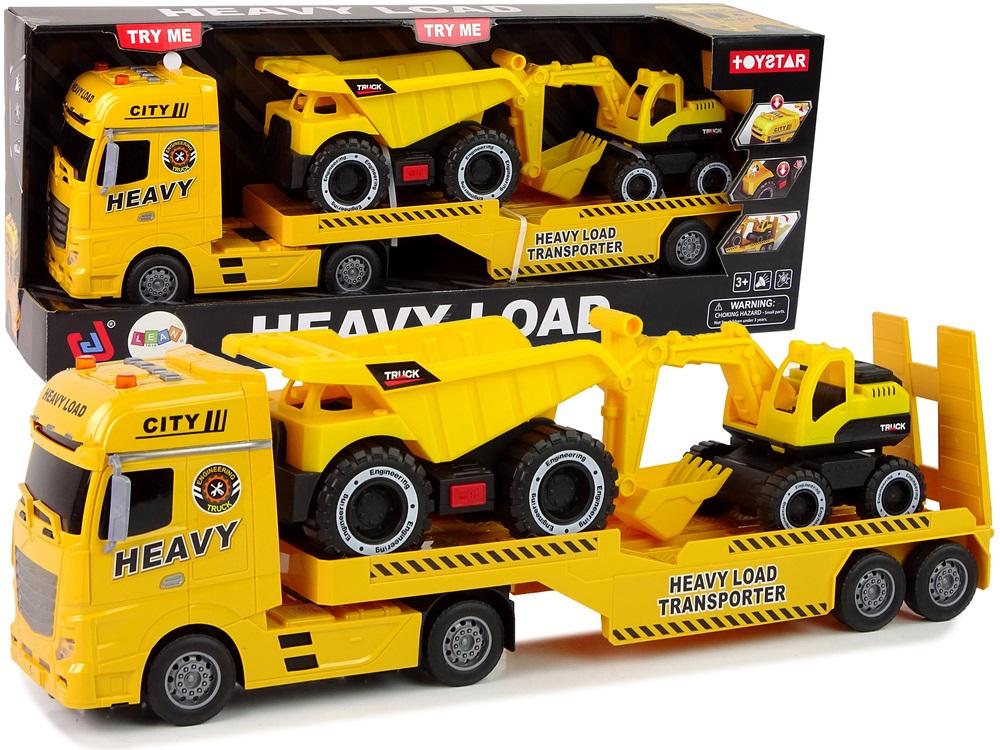 Zestaw Budowa Laweta Koparka Wywrotka Dźwięk Światła Od teraz wszyscy pasjonaci motoryzacji oraz pojazdów budowlanych będą mogli rozpocząć budowę. Zestaw pojazdów uprzywilejowane to z pewnością to najbardziej pożądane przez dzieci zabawki. Zabawkowe pojazdy budowlane to zabawka, o której marzy maluch. Żółta wywrotka posiada ruchome koła, unoszoną naczepę, całą zawartość można wysypać w odpowiednie miejsce. Po boku wywrotki umieszczony jest przycisk, który uruchamia efekty świetlne i dźwiękowe, czyniące zabawę jeszcze lepszą frajdą! Odgłos odpalania i działającego silnika umożliwią bardziej realistyczne odczucia. Koparka również ma ruchomą łyżkę, bez problemu wykopie mały dołek w piasku. Ciężarówka laweta ma charakterystyczne dźwięki takie jak odpalanie, sygnał dźwiękowym, cofania. Rampa jest na tyle długa, że pomieści wszystkie środki transportu dołączone do zestawu. Opuszczana rampa umożliwi swobodne opuszczanie pojazdów. Wszystkie auta mają charakterystyczne charakterystyczny wygląd dla wszystkich pojazdów budowy. Na płaskiej powierzchni osiągają niesamowitą prędkość. Zabawki wykonane są z plastiku, dzięki czemu są lekkie i całkowicie bezpieczne. Elementy zestawu: - laweta - koparka - wywrotka Wymiary elementów zabawki: - laweta: 62 cm x 10 cm x 17 cm -wywrotka 18 cm x 10 cm x 11 cm -koparka: 16 cm x 10 cm x 18 cm długość ramienia: 22 cm Wymiary opakowania zestawu: 59 cm x 14 cm x 24 cm Przeznaczony dla wszystkich dzieciaków powyżej 3. roku życia. Zabawka posiada certyfikat CE, gwarantujące komfort i bezpieczeństwo płynące z jej użytkowania. Zasilane bateriami AG13.