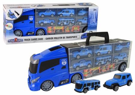 Ciężarówka Policji Laweta Auta Niebieska Zestaw Transporter ciężarówka policyjna to wielofunkcyjny pojazd, który inspiruje dzieci do zabawy w akcje ratunkowe w ramach własnych, bohaterskich przygód. Transporter ma w przyczepie 6 pojazdów oraz po drugiej stornie może pomieścić kolejne 6 samochodzików (sprzedawanych oddzielnie). Transporter ciężarówka policyjna to inspirowana pracą policjantów ciężarówka z miejscem do przechowywania pojazdów, zachęcająca do wymyślania własnych przygód. W naczepie po przeciwnej stornie jest specjalny schowek, w którym można przechowywać dodatkowe pojazd oraz akcesoria, co pozwala na trzymanie wszystkich elementów w jednym miejscu, a to nie musisz się martwić, że coś zgubisz, 6 pojazdów związanych z gaszeniem policją inspiruje do kreatywnej zabawy w realistycznym otoczeniu. Ciężarówka jest wyposażona w wygodną rączkę transportową, co ułatwia dzieciom przenoszenie zestawu z jednego miejsca do drugiego. Ten zestaw ciężarówki policyjnej to idealna zabawka dla dzieci, które uwielbiają symulować sytuacje ratunkowe, rozwijając jednocześnie swoją wyobraźnię i zdolności manualne. Dzięki różnorodnym elementom zestawu, dzieci mogą tworzyć własne przygody policyjne i uczyć się podstawowych zasad bezpieczeństwa na drodze. Zawartość zestawu : - Oryginalne opakowanie - Samochód ciężarowy z naczepą - 5 dodatkowych pojazdów -1 helikopter - 4 znaki drogowe Wymiary pojazdu : 39 cm x 14 cm x 9 cm Wymiary opakowania : 40 cm x 15 cm x 10 cm Posiada certyfikat CE, ponadto jest zgodny z normą EN71. Zabawka przeznaczona jest dla dzieci powyżej 3 roku życia.