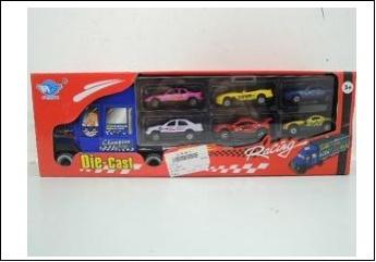Metalowa laweta na 6 samochodzików. Zestaw zawiera samochodziki.