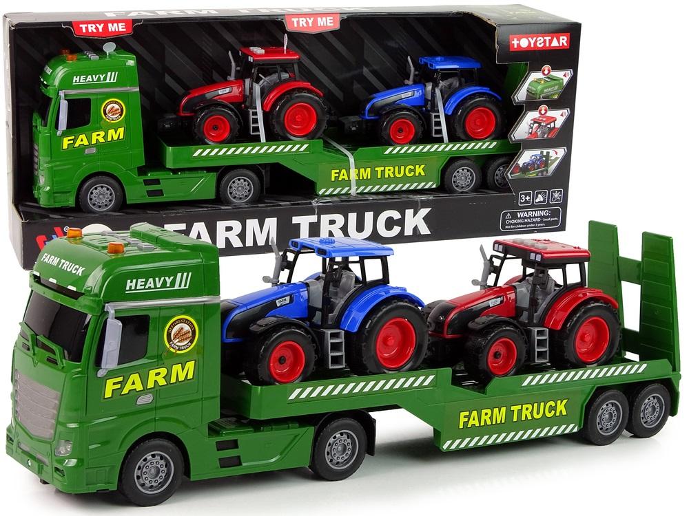 Zestaw Farma Laweta Traktor Dźwięk Światła Od teraz wszyscy pasjonaci motoryzacji oraz życia na farmie będą mogli rozpocząć zabawę. Zestaw pojazdów uprzywilejowane to z pewnością to najbardziej pożądane przez dzieci zabawki. Zabawkowe helikoptery i auta to zabawka, o której marzy każdy mały chłopiec. Ciężarówka ma charakterystyczne dźwięki takie jak odpalanie, sygnał dźwiękowym, cofania. Rampa jest na tyle długa, że pomieści wszystkie środki transportu dołączone do zestawu. Opuszczana rampa umożliwi swobodne opuszczanie pojazdów. Traktory w dwóch wersjach kolorystycznych mają również sygnały dźwiękowe. Odgłosy i przednie światła umożliwią bardziej realistyczne odczucia. Wszystkie auta mają przyciemniane szyby oraz gumowe opony. Na płaskiej powierzchni osiągają niesamowitą prędkość. Zabawki wykonane są z plastiku, dzięki czemu są lekkie i całkowicie bezpieczne. Elementy zestawu: - laweta - dwa traktory Wymiary elementów zabawki: - laweta: 52 cm x 11 cm x 17 cm - traktory: 20 cm x 9 cm x 11 cm Wymiary opakowania zestawu: 59 cm x 24 cm x 14 cm Przeznaczony dla wszystkich dzieciaków powyżej 3. roku życia. Zabawka posiada certyfikat CE, gwarantujące komfort i bezpieczeństwo płynące z jej użytkowania. Zasilane bateriami AG13, w zestawie.