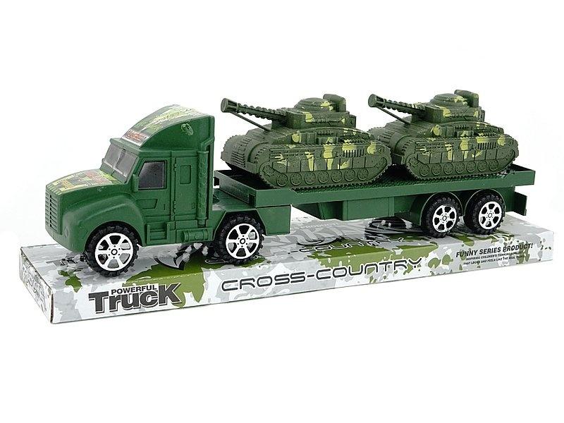 auto wojskowe z lawetą i czołgami, napęd na koło zam; 33x8,5x7cm, PVC