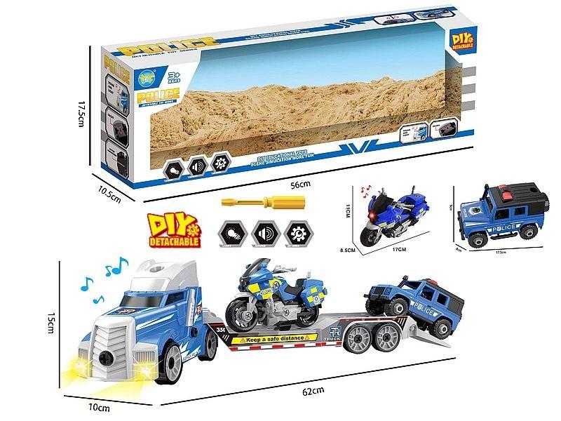 Auto z lawetą i 2 pojazdami do skręcania, światło, dźwięk