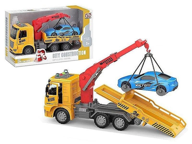 auto z lawetą i autem 1:16, światło, dźwięk, otwierane drzwi; 36x24x9cm, W/B