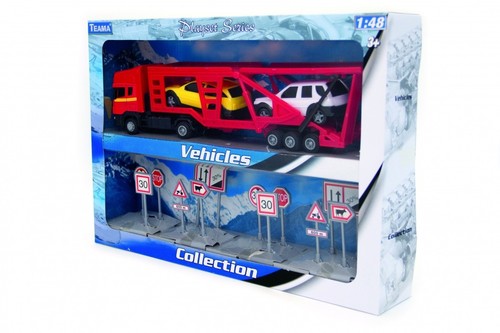 Opakowanie Laweta z naczepą + znaki czerwona 1:48