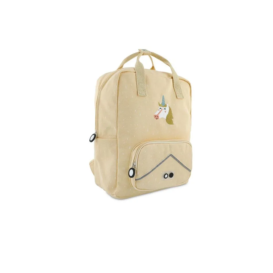 Chodźmy, pora rozpocząć dzień! Ten przestronny plecak ma miejsce na wszystko, czego potrzebuje Twoje dziecko. Jest na tyle duży, że zmieszczą się w nim książki i pliki w formacie A4, posiada wyściełany ergonomiczny panel z tyłu, regulowane szelki oraz pasek na klatkę piersiową dla wygodnego noszenia. Atrybuty: metka na imię, pasuje na format A4, dwie kieszenie z zamkiem błyskawicznym - jedna kieszeń znajduje się w środku plecaka druga na zewnątrz, boczne kieszenie na butelkę z wodą albo przekąski, elementy odblaskowe dla bezpieczeństwa, rączka ułatwiająca przenoszenie plecaka, detal na suwaku: mały ogon zwierzątka, który sprawi uśmiech na twarzy dziecka. Skład: 60% bawełna z recyklingu, 35% bawełna, 5% wiskoza - podszewka: 85% przetworzony PES z recyklingu, 15% bawełna wodoodporna powłoka akrylowa Pojemność: 11l Wymiary: 34cm x 27cm x 12cm Wiek: 3 lata+ Producent: Trixie Baby
