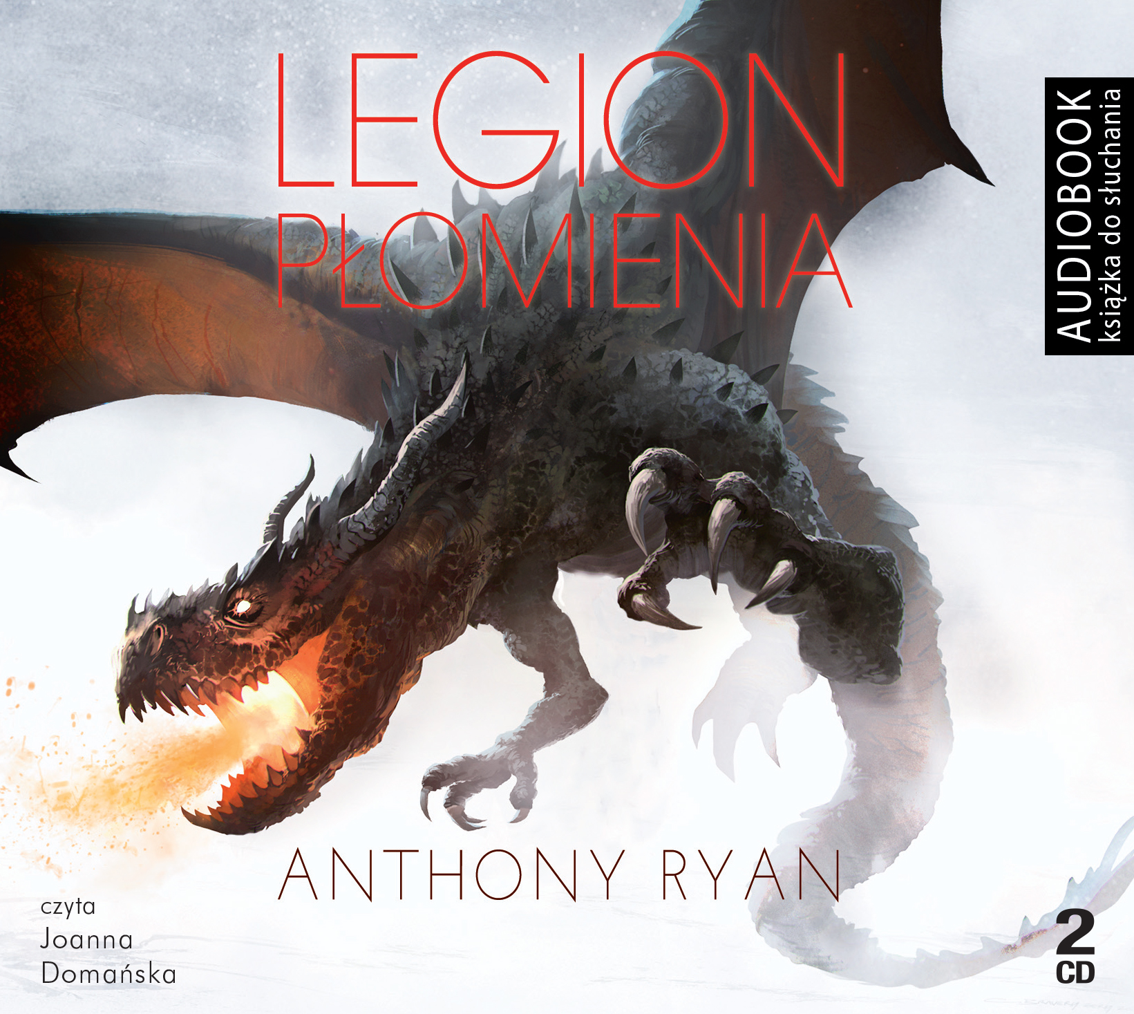 Legion płomienia to drugi tom cyklu Draconis Memoria, epickiej fantasy o wartkiej, obfitującej w magiczne przygody fabule osnutej wokół okrutnej wojny, w której wykuwają się zręby nowego cesarstwa. Claydon Torcreek uszedł cało z rojącej się od smoków dżungli, wymknął się wrogim tubylczym plemionom i uniknął zimnego tchnienia zdrady, a mimo to jego kłopoty dopiero się zaczęły. Legendarny biały smok, którego istnienie do niedawna wkładano między bajki, obudził się z długiego snu powodowany żarliwym pragnieniem spopielenia świata ludzi. Jedno miasto padło już ofiarą jego potężnych legionów, a następne wkrótce pójdą w jego ślady – chyba że Clay zdoła odkryć prastary sekret pogrzebany w lodach dalekiego południa. Aby tego dokonać, będzie musiał po raz kolejny zmierzyć się z niewyobrażalnym zagrożeniem. Różnica jest taka, że tym razem w jego rękach spoczywa los nie tylko ojczystego kraju, lecz całego świata. Czyta Joanna Domańska
