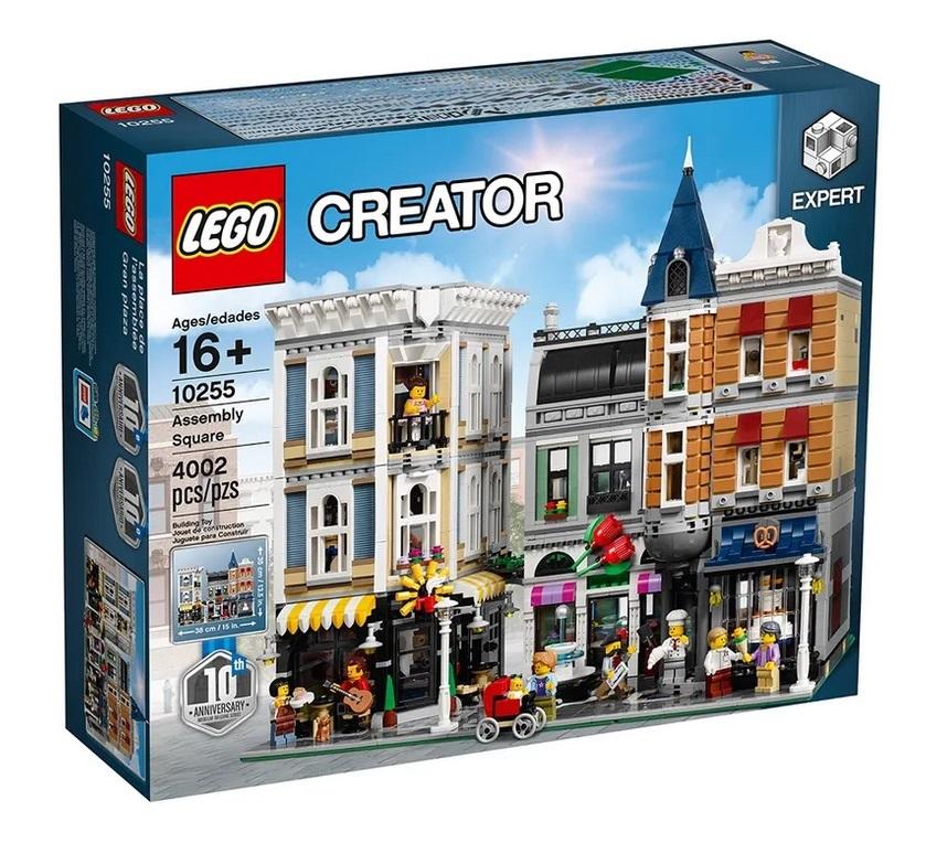 Zapraszamy na niezwykły Plac Zgromadzeń! Zobacz zestaw, który powstał dla uczczenia 10-lecia serii LEGO(R) Modular Buildings i oferuje mnóstwo niedostępnych gdzie indziej, intrygujących detali i ukrytych niespodzianek. Budynki są podzielone na łatwe do demontażu sekcje. Po ich usunięciu dostaniesz dostęp do pełnego detali wnętrza, na które składa się poziom parteru z piekarnią, kwiaciarnią i kafejką, poziom środkowy ze sklepem muzycznym, studiem fotograficznym oraz gabinetem dentysty, oraz poziom górny, na którym znajduje się studio tańca i mieszkanie, z którego wychodzi się na taras dachowy z grillem. Na zewnątrz budynku znajduje się ukazany z wszelkimi szczegółami chodnik z kawiarnianym ogródkiem i fontanną, latarniami, bogata fasada ze szczegółowo ukazanymi oknami i drzwiami, trzy szyldy sklepowe do złożenia, spiczastą wieżyczką dekoracyjnym dachem. W środku osiem minifigurek plus figurka małego dziecka.