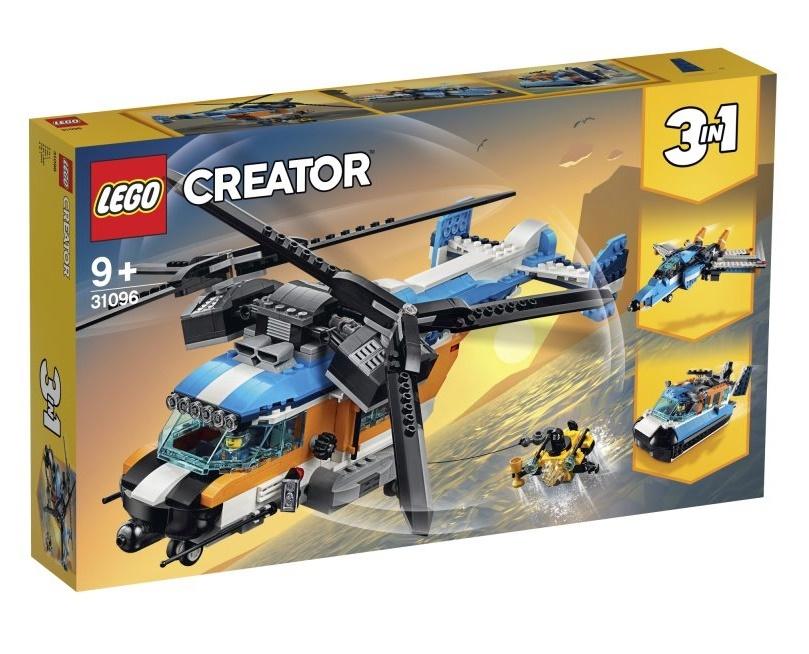 - Zestaw LEGO(R) Creator 3 w 1 umożliwia zbudowanie trzech różnych modeli. Śmigłowiec dwuwirnikowy można przerobić na odrzutowiec lub poduszkowiec, by przeżyć kolejne przygody pełne dynamicznej akcji.