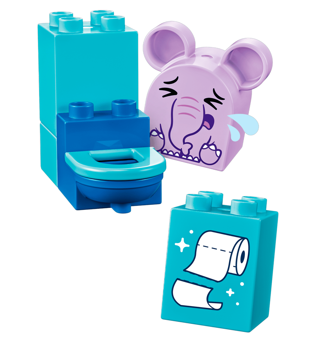 o Zabawka edukacyjna -- zawiera dwie figurki słoni, toaletę, wannę i prysznic zbudowane z solidnych klocków LEGO(R) DUPLO(R), a także elementy do zabawy w kąpiel.