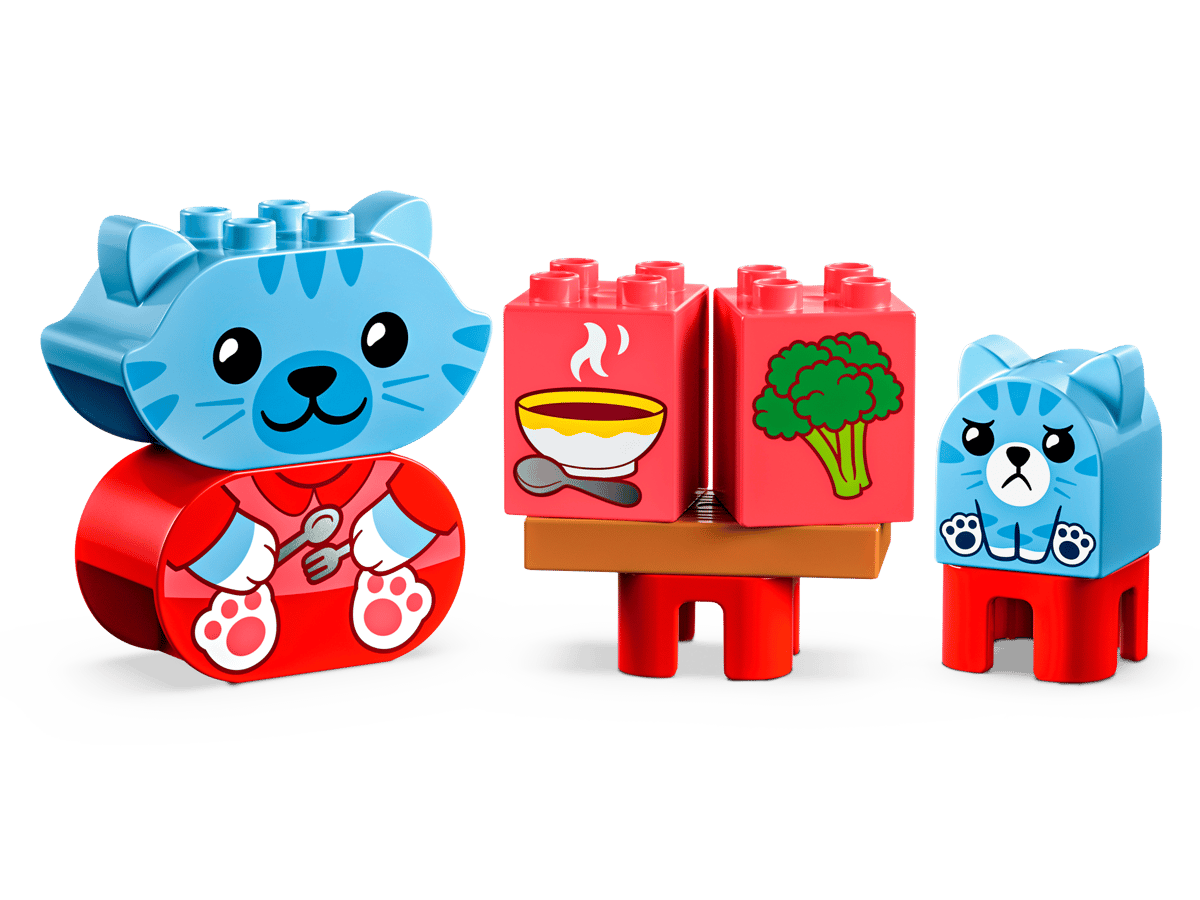 o Zabawka wspierająca rozwój emocjonalny i społeczny -- zestaw LEGO(R) DUPLO(R) Moje pierwsze codzienne czynności -- jedzenie i pora snu zapoznaje dzieci w wieku od 18 miesięcy z codziennymi czynnościami.