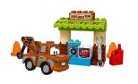 Mali fani filmu Auta 3 wytwórni Disney•Pixar z radością spotkają się ze Złomkiem w jego szopie, a slalom wokół słupków i używanie klucza będą dla nich świetną zabawą. Pozwól dziecku udawać, że rozmawia na czacie wideo z Zygzakiem McQueenem na komputerze Złomka. W ten sposób pomożesz mu rozwijać zdolności manualne i ćwiczyć wcielanie się w role. Przyjaźń tych dwóch bohaterów nie słabnie nawet, gdy Zygzak wyjeżdża daleko na zawody — to inspiracja do świetnej zabawy! W zestawie do zbudowania Złomek z hakiem oraz fronton szopy z markizą. Zawiera klocki z rysunkami markizy, którą ozdabiają lampki w kształcie papryczek chili, ekran komputera z widocznym Zygzakiem McQueenem, radio oraz znak „Home Sweet Home”. W zestawie są też akcesoria: oliwiarka, klucz i dwa słupki. Zestaw dla dzieci w wieku 2-5 lat.