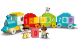 o Pomóż maluchom w poznawaniu pierwszych cyferek z zestawem LEGO(R) DUPLO(R) Pierwsze klocki Pociąg z cyferkami -- nauka liczenia (10954). To nowa wersja popularnego pociągu z cyferkami, która oferuje jeszcze więcej kolorowych okazji do wesołej nauki.o W komplecie popychany pociąg z wagonami wypełnionymi 10 klockami z cyframi, a do tego figurki LEGO(R) DUPLO(R) chłopca, dziewczynki i pieska, które inspirują do twórczego odgrywania ról.o Podczas kierowania pociągiem, ustawiania na nim klocków z cyframi, zdejmowania ich, łączenia i sortowania dzieci rozwijają koordynację wzrokowo-ruchową. Odkrywanie różnorodnych możliwości zabawy tym zestawem pomaga im w nauce kolorów i liczb.o Dzięki uroczym postaciom i kolorowym klockom, które łatwo uchwycić, zestaw nadaje się już dla 18-miesięcznych maluchów -- a rodzicom pozwala uczestniczyć w każdym etapie rozwoju ich pociech.o Zestaw ma ok. 10 cm wysokości i 47 cm długości i można go łatwo połączyć z innymi zestawami LEGO(R) DUPLO(R), by zainspirować dzieci do jeszcze lepszej zabawy w świecie wyobraźni.o Przeznaczony dla maluchów plakat może służyć również jako mata do zabawy. Rysunki na plakacie przedstawiają części zestawu w rzeczywistym rozmiarze oraz sposób, w jaki można je połączyć, by zbudować pociąg.