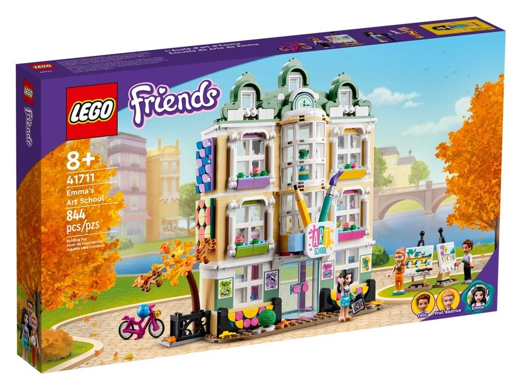 Zainspiruj dzieci do kreatywnej zabawy zestawem Szkoła artystyczna Emmy (41711).  To wspaniały prezent dla dzieci w wieku od 8 lat. W środku pięknego  budynku znajdują się trzy piętra pełne kreatywnych artystycznych  zabawek, gdzie chłopcy i dziewczęta mogą towarzyszyć Emmie z LEGO(R)  Friends w nauce ceramiki, projektowania mody i drukowania 3D.