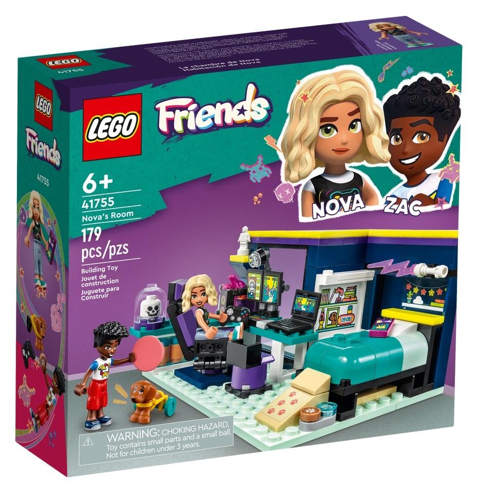Zestaw LEGO(R) Friends Pokój Novy (41755) to mnóstwo zabawy dla sześciolatków i  starszych dzieci. Zac nie wiedział, że tyle łączy go z Novą, dopóki nie  odkrył, że uwielbia gry - tak jak on! Teraz mogą rozwijać swoją przyjaźń  podczas wspólnej gry. Dzieci będą zafascynowane możliwością odkrywania  funkcji pokoju. Znajduje się w nim komputer z klawiaturą i neonowymi  wiatrakami, a także fotel gamingowy i mikrofon. Dzieci mogą pomagać  postaciom w opiece nad Picklem, przygarniętym pieskiem. Jest tu także  stół, na którym Nova naprawia wózek Pickle'a oraz rampa, po której pies  wjeżdża na łóżko. Dodatkowo w sypialni kryją się detale (na przykład  ukryty plakat), które zdradzają inne zainteresowania Novy.