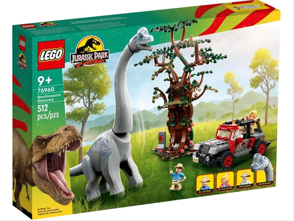 Uchwyć zachwyt dr Ellie Sattler i dr. Alana Granta, gdy po raz pierwszy ujrzeli majestatycznego brachiozaura, dzięki temu zestawowi LEGO(R) Jurassic World Odkrycie brachiozaura (76960) dla dzieci w wieku od dziewięciu lat. To świetny pomysł na prezent dla fanów ,,Parku Jurajskiego"". Zestaw zawiera ruchomego brachiozaura, najwyższą jak dotąd figurkę dinozaura LEGO, a do tego Jeepa(R) Wranglera do zbudowania i drzewo. Jeep ma miejsce na trzy minifigurki -- dr. Alana Granta, dr Ellie Sattler i Johna Hammonda -- a drzewo ma platformę widokową i odczepiane liście, którymi można ,,nakarmić"" brachiozaura, tak jak robił to Alan Grant w filmie.