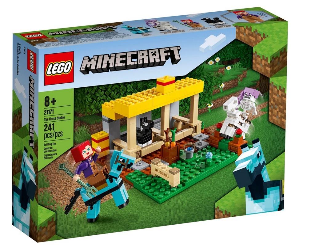 o Zestaw LEGO(R) Minecraft(TM) Stajnia (21171) można przebudowywać -- dzięki niemu dzieci odkryją nieograniczone możliwości zabawy z postaciami znanymi z gry.o Młodzi fani Minecrafta(TM) znajdą tu znane moby koni, zbudują stajnię i wykorzystają autentyczne, znane z gry akcesoria, które zachęcają do swobodnej zabawy.o Ten wszechstronny zestaw gwarantuje dzieciom mnóstwo okazji do zabawy w odgrywanie ról. Młodzi konstruktorzy mogą zajmować się końmi i karmić je marchewkami, zbudować tor przeszkód i stoczyć walkę ze szkieletowym jeźdźcem!o Praktyczny zestaw inspirowany popularną grą sieciową zachwyci wszystkich fanów Minecrafta(TM) i miłośników koni w wieku od 8 lat.o Zestaw ma ok. 9 cm wysokości, 14 cm szerokości i 14 cm głębokości. Można go przebudowywać, więc doskonale nadaje się do zabawy i postawienia na półce, a do tego łatwo łączy się z innymi zestawami LEGO(R) Minecraft(TM).o W zestawie z kolorową stajnią i jej otoczeniem znajdują się akcesoria znane z Minecrafta(TM), takie jak bele siana, złota marchewka i diamentowa zbroja dla konia.o Zestawy LEGO(R) Min = ecraft(TM) pozwalają fanom Minecrafta czerpać radość z ulubionej gry w nowy sposób dzięki postaciom, sceneriom i funkcjom, które ożywają podczas kreatywnej zabawy klockami LEGO.