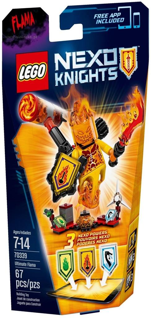 Gdy ten narwany potwór zamachnie się wspaniałym młotem płomienistego zniszczenia, nic go nie powstrzyma! Później wali nim w ziemię i tworzy wokół przeciwnika krąg płomieni. Niepokonany Flama zna też masę różnych sztuczek i potrafi urządzić wrogom niezłą kąpiel z użyciem miotacza mazi i lodowatej wody. Podnieś swoją wartość bojową, skanując tarcze 3 mocy NEXO. Zbierz jak najwięcej unikalnych zdolności w postaci cyfrowej, aby przechytrzyć przeciwników w darmowej aplikacji LEGO NEXO KNIGHTS: MERLOK 2.0. Zeskanuj 3 moce NEXO: Płomieniste zniszczenie, Atak śluzu i Lodowy smok.