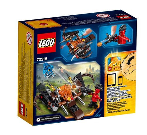 Sięgnij po Katapultę w kształcie kuszy i odegraj scenariusz oblężenia. Pojazd ma szare szpony oraz wielkie zęby i może strzelać w królewskich strażników globlinowymi kulami. W zestawie 2 minifigurki. Zawiera 2 minifigurki: Miotacz Płomienia i królewski strażnik. Katapulta ma kształt kuszy i jest uzbrojona w 2 pociski. W zestawie broń: włócznia dla królewskiego strażnika i kusza na klocki dla Miotacza Płomienia. Dostępne akcesoria to hełm i zbroja królewskiego strażnika, kołczan Miotacza Płomienia i 3 globlinowe kule. Wymiary Katapulty: ok. 6 cmwysokości, 9 cm długości i 14 cm szerokości. Wiek 7-14 lat