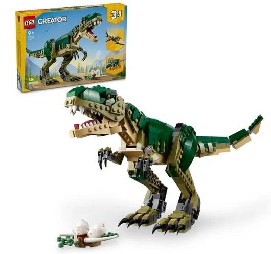 Trzy LEGO dinozaury w jednym zestawie zestaw LEGO 3w1 Creator Tyranozaur pozwoli dzieciom zbudować trzy różne figurki dinozaurów z tych samych klocków, a następnie je przebudować