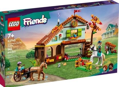 Podaruj małym miłośnikom koni w wieku od siedmiu lat zestaw do zbudowania LEGO(R) Friends Stajnia Autumn (41745). Obejmuje on minilaleczki Autumn i Aliyi, dwie figurki koni oraz akcesoria do kreatywnej zabawy. Dzieci opiekują się końmi i zaprzęgają je do bryczki, aby wybrać się na przejażdżkę. Mogą też lepiej poznać główne postacie. Autumn i Aliya różnią się charakterami, ale są najlepszymi przyjaciółkami. Uwielbiają spędzać ze sobą czas i przeżywać przygody. Nad stajnią znajduje się kuchnia i sypialnia z łóżkami z siana. Wszystko to, o czym marzą wielbiciele koni!