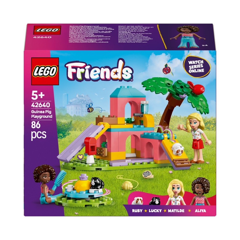 Zestaw konstrukcyjny LEGO(R) Friends Plac zabaw dla świnek morskich (42640) zawiera dwie minilaleczki LEGO Friends i dwie figurki świnek morskich, które zapewnią wiele godzin zabawy w odgrywanie ról. To idealna zabawka dla chłopców, dziewczynek i miłośników zwierząt w wieku od pięciu lat, którzy uwielbiają wymyślać przygody ze świnkami morskimi.
