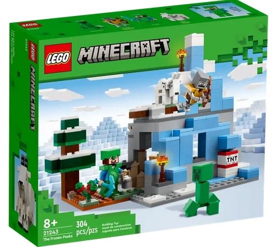 Gracze w Minecrafta rozpoznają ośnieżone szczyty i tajgę i z chęcią wykorzystają swoje umiejętności z gry, by wydobyć węgiel, żelazo i szmaragdy leżące pod lodem. Dzieci muszą zbudować bezpieczną bazę i zebrać jedzenie, zanim zaczną kopać. Gdy kultowe moby, Creeper i tułacz, podejdą za blisko, dzieci mogą uciec niebezpieczną jaskinią naciekową, użyć dynamitu, by wysadzić górę i dotrzeć do bazy lub pokierować kozą i zrzucić moby z klifu! Inne funkcje i akcesoria zapewnią niekończącą się zabawę rodem z Minecrafta. Dodatkową cyfrową rozrywkę zapewni aplikacja LEGO Builder, w której można powiększać i obracać model podczas budowania.