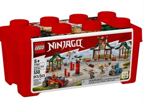 * Pełen akcji zestaw - w zestawie LEGO(R) NINJAGO(R) Kreatywne pudełko z klockami ninja (71787), zawierającym trzy budynki, trzy przeszkody i dwa pojazdy dzieci mają wszystko, czego potrzebują, aby szkolić swoich bohaterów ninja.
