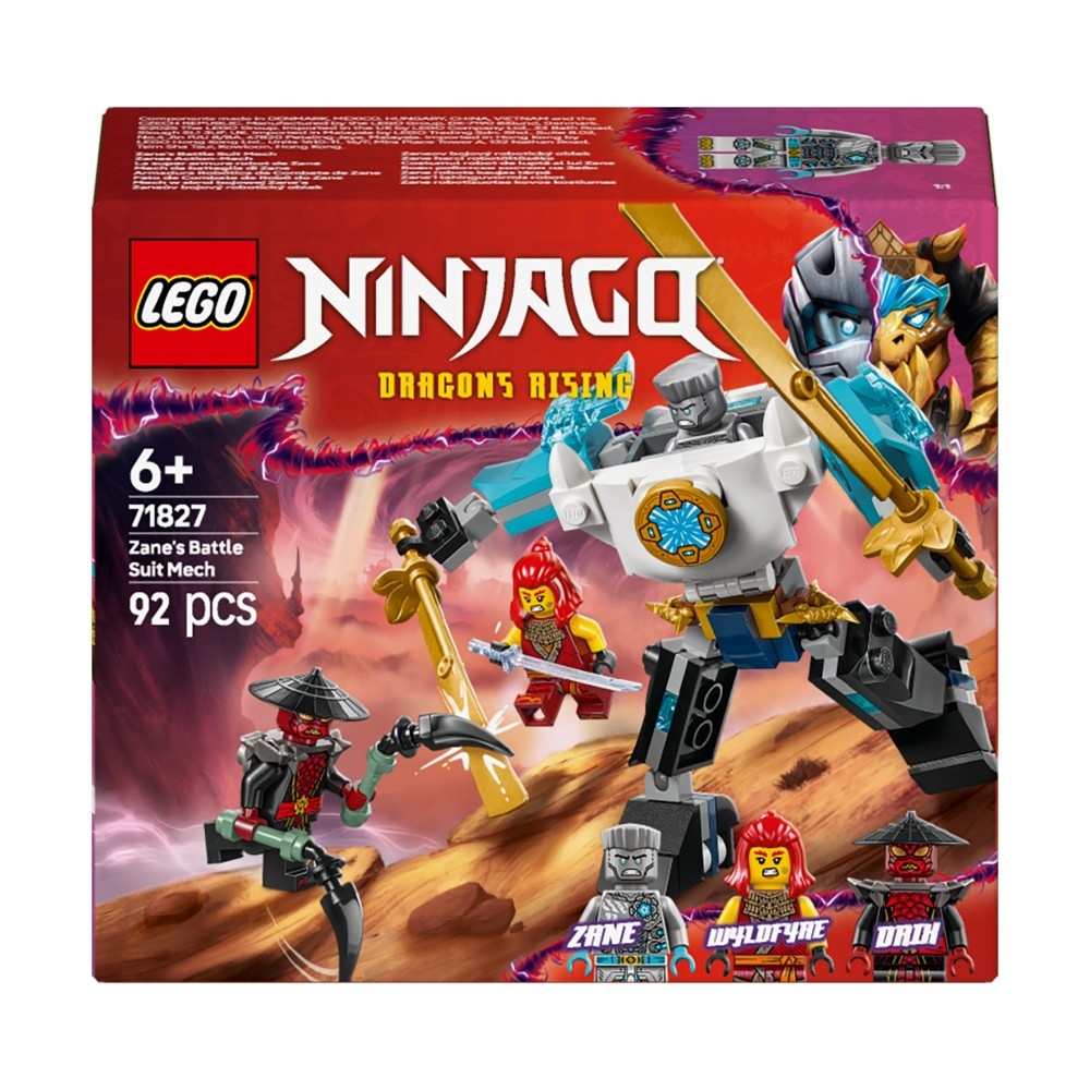 Zestaw LEGO(R) NINJAGO(R) Mech w zbroi bojowej Zanea (71827) umożliwia sześciolatkom i starszym dzieciom odtwarzanie ekscytujących akcji z trzeciego sezonu serialu telewizyjnego NINJAGO(R): Powstanie Smoków. Zawiera on mecha NINJAGO z ruchomymi rękami, nogami i dłońmi, obrotowym tułowiem, otwieranym korpusem, w którym można umieścić minifigurkę, oraz dwoma dużymi mieczami.