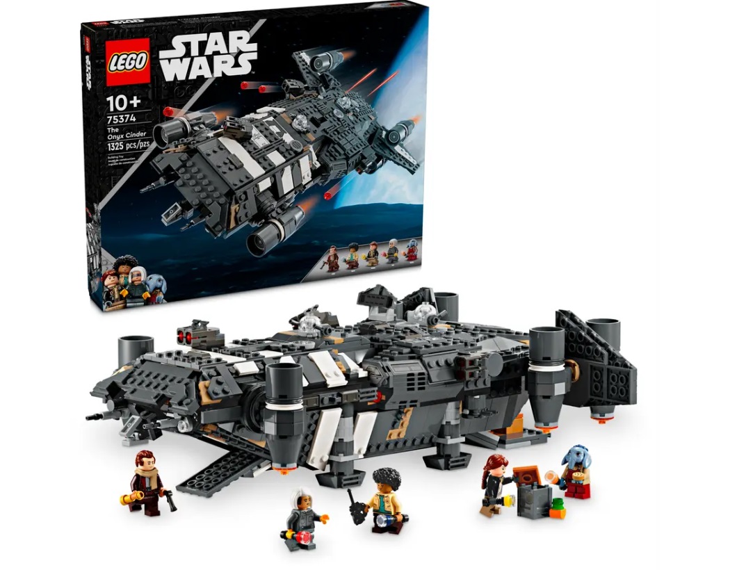 Dzieci mogą zostać bohaterami przygód z serialu Star Wars: Skeleton Crew dzięki szczegółowemu zestawowi LEGO® ze statkiem Onyx Cinder (75374). Ten kolekcjonerski pojazd LEGO Star Wars™ do zbudowania ma obrotowe silniki do trybu lądowania i startu, dwa miotacze klocków, dwie obrotowe wieżyczki, każda z dwoma miotaczami, oraz chwytak. Na statku są też miejsca dla pięciu postaci LEGO Star Wars (minifigurka LEGO Joda w kokpicie oraz Wim, Fern, KB i Neel w kabinie pasażerskiej). W zestawie znajdują się też schowki na cztery latarki do zbudowania i inny ładunek. Jest tu także stół kuchenny, łóżko i akcesoria, w tym owoc i krótkofalówka, które poszerzają możliwości kreatywnej zabawy.