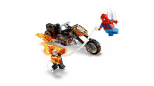 Minifigurka Ghost Ridera przedstawiona jest jako szkielet z płomieniami wydobywającymi się z rąk i głowy. Jego kultowy zabawkowy motocykl ma dwie rury wydechowe z płomieniami i dwa wbudowane miotacze klocków. Pajęczą sieć minifigurki Spider-Mana można przymocować do LEGO motocykla, co oferuje nieograniczone możliwości zabawy w odgrywanie ról na jednośladzie i poza nim.