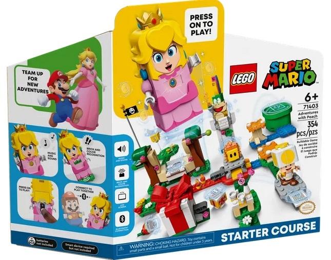 Zapoznaj dzieci z interaktywnym światem LEGO(R) Super Mario dzięki zestawowi startowemu Przygody z Peach (71403). Zestaw zawiera figurkę LEGO Peach, która za pomocą ekranu LCD i głośnika natychmiast reaguje na otoczenie. Figurkę LEGO Peach można połączyć z figurkami LEGO(R) Mario lub LEGO(R) Luigi (dodatkowe figurki nie są częścią zestawu) za pomocą technologii Bluetooth, aby zdobywać dodatkowe monety za współpracę.