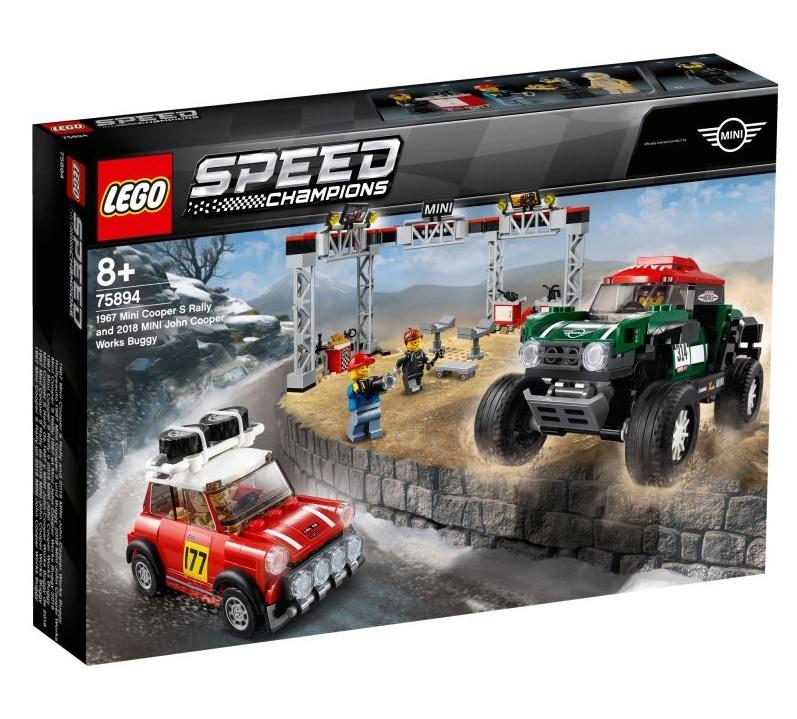 Klasyczny samochód rajdowy kontra nowoczesny! Który wygra? Przekonaj się w rewelacyjnym zestawie LEGO(R) Speed Champions 75894 1967 Mini Cooper S Rally oraz 2018 MINI John Cooper Works Buggy! 1967 Mini Cooper S Rally ma bagażnik na dachu z dwiema zapasowymi oponami, jak prawdziwe samochody tego typu, a 2018 MINI John Cooper Works Buggy ma zawieszenie umożliwiające jazdę po trudnym terenie. Rozgrywaj emocjonujące rajdy za pomocą czterech minifigurek LEGO i w pełni wyposażonej stacji serwisowej, na której znajdziesz podnośnik samochodowy do zbudowania, leżankę monterską, stojaki z narzędziami, narzędzia i ekrany komputerowe.