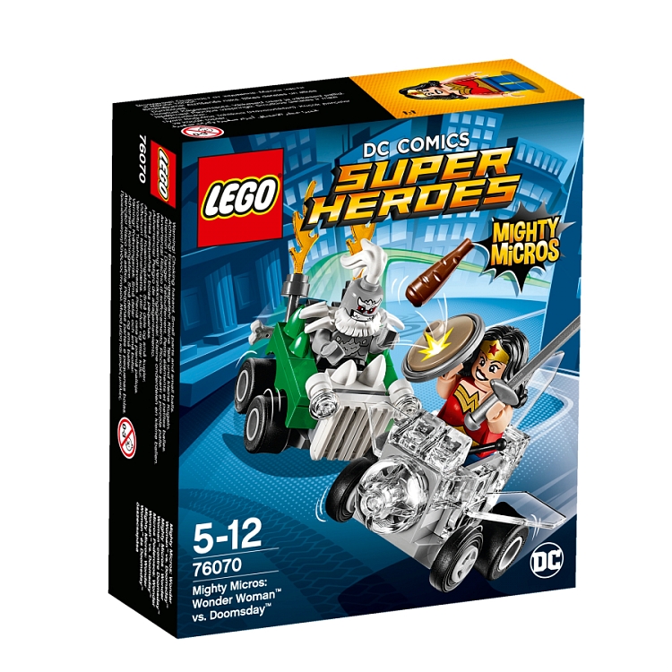Zawiera dwie minifigurki z miniaturowymi nogami: Wonder Woman i Doomsday.