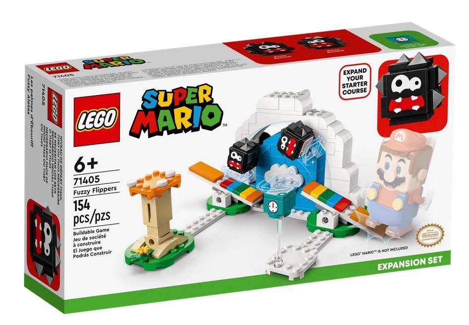 Dzieci w wieku od sześciu lat mogą wzbogacić swoje poziomy LEGO(R) Super Mario o podniebne wyzwanie dzięki zestawowi Salta Fuzzyego  zestaw rozszerzający (71405). W komplecie jest model nieba i chmury do zbudowania, platformy dla dwóch figurek LEGO Fuzzych, a także grzybowa trampolina i blok czasu. Pomóż LEGO(R) Mario, LEGO(R) Luigiemu lub LEGO(R) Peach (figurki nie są częścią zestawu) wybić się z grzybowej trampoliny i nadepnąć na oba końce platform, aby strącić Fuzzych i zdobyć cyfrowe monety. (Uwaga: do interaktywnej zabawy wymagany jest zestaw startowy 71360, 71387 lub 71403).