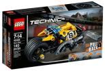 Odlotowy kaskaderski motocykl LEGO® Technic zabierze Cię na przejażdżkę życia! Ta pomalowana w ostry, żółto-czarny wzór maszyna ma naklejki z wyścigową szachownicą, światła z przodu i z tyłu, fajne rury wydechowe i wyjątkowo szerokie koła z niskoprofilowymi oponami, które gwarantują doskonałą przyczepność i równowagę. Uruchom potężny silnik typu pull-back, a motocykl jak strzała popędzi po pochylni i wykona niesamowite ewolucje.