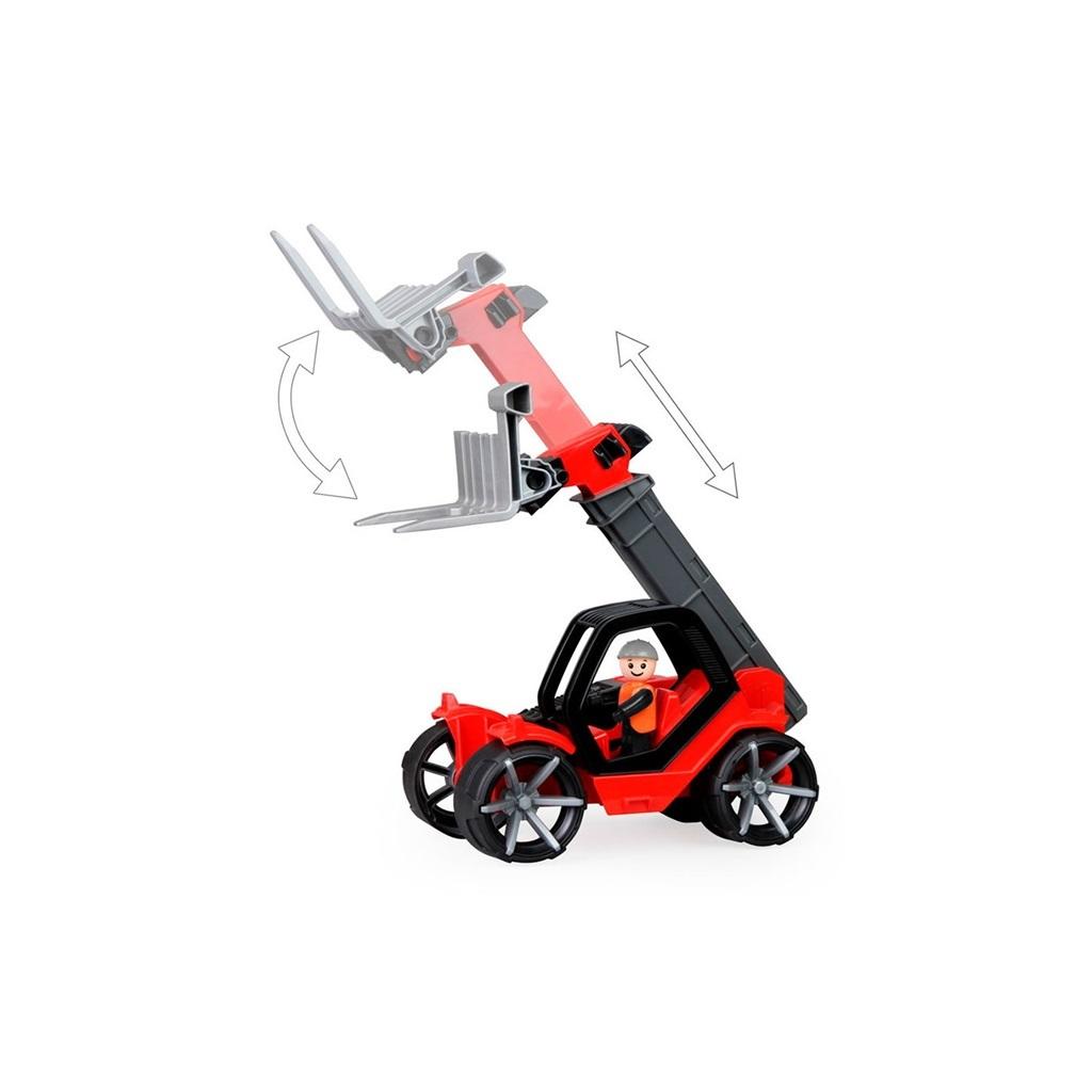 Podnośnik teleskopowy wykonany został z wysokiej jakości tworzywa, konstrukcja pojazdu jest solidna. Największym atutem zabawki są gumowe koła, dzięki którym poruszanie po różnego typu powierzchniach jest łatwiejsze oraz dużo mniej hałaśliwe. Auto w pełni oddaje prawdziwy wygląd podnośnika teleskopowego, widlaka, a ruchome elementy sprawiają, że zabawa staje się jeszcze ciekawsza. Materiały z jakich wykonano zabawkę są solidne i czynią zabawkę bardzo trwałą z przeznaczeniem na długie lata użytkowania. Wysięgnik z ruchomymi elementami idealnie nadaje się do zabawy w domu, a także świetnie sprawdzi się na placu zabaw czy podwórku. Niewielkie rozmiary zabawki sprawiają, że dziecko może zabrać ją ze sobą wszędzie.