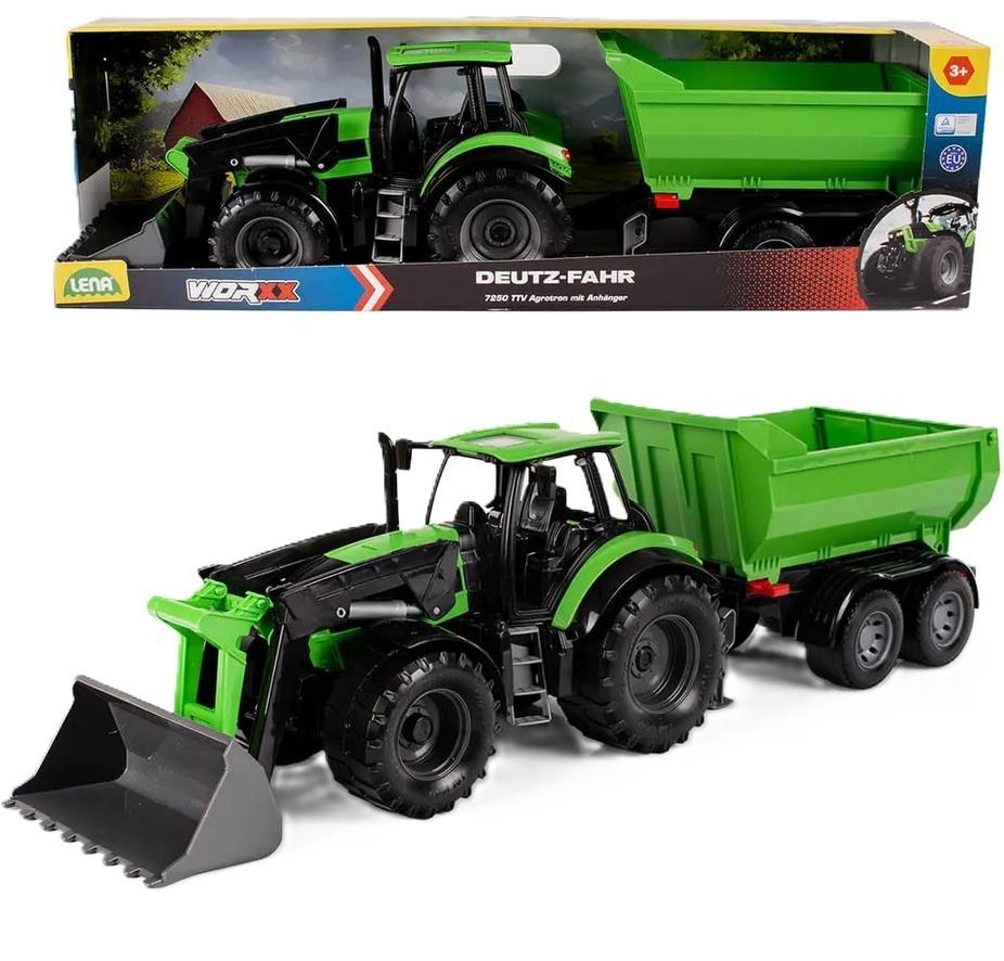 Dzieci uwielbiają zabawę w farmę, pojazdy rolnicze i odgrywanie ról małych farmerów. Traktor z przyczepą DEUTZ FAHR 7250 Agrotron z serii LENA WORXX to idealna zabawka dla każdego małego miłośnika maszyn rolniczych. Dzięki wiernemu odwzorowaniu prawdziwego ciągnika w skali 1:15, dziecko może poczuć się jak prawdziwy operator traktora. Solidna konstrukcja i ruchome elementy zapewniają wiele godzin kreatywnej zabawy w domu, na podwórku, czy w piaskownicy. Zabawka została wykonana z trwałego tworzywa odpornego na blaknięcie, co czyni ją idealną do użytkowania na świeżym powietrzu. Dzięki ruchomej łyżce, otwieranemu szyberdachowi czy kiprowanej przyczepie, dziecko rozwija zdolności manualne i wyobraźnię. Zabawa pojazdami wspomaga rozwój motoryki, koordynacji i kreatywności. To nie tylko świetna rozrywka, ale także wsparcie w rozwoju umiejętności dziecka. Czy Twoje dziecko uwielbia prawdziwe maszyny rolnicze, traktory lub zabawę w farmera? Ten model sprawi mu ogromną radość!